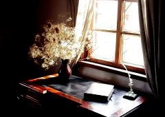 W środku znajdziemy duży pokój – jadalnię, salon, sypialnię i gabinet, czyli dawną bawialnię, w której podobno urodził się poeta.
